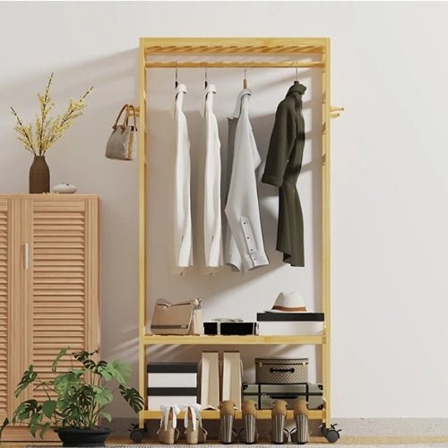 • Portant en bois vetement de bambou avec 3 crochets et 2 étagères